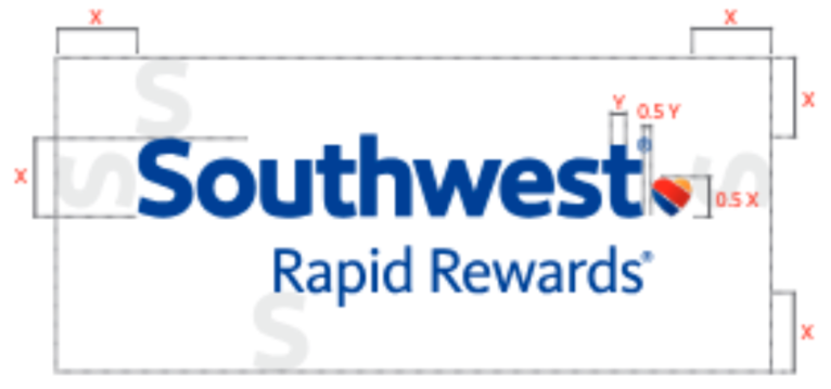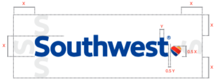 Always surround the Southwest logo with at least the required minimum of clear space, which is equal to the height of the capital “S” in Southwest. In digital, wayfinding, and signage applications only, the clear space may be reduced to one half of the capital “S” in Southwest. The logo must always be at least 1” wide.